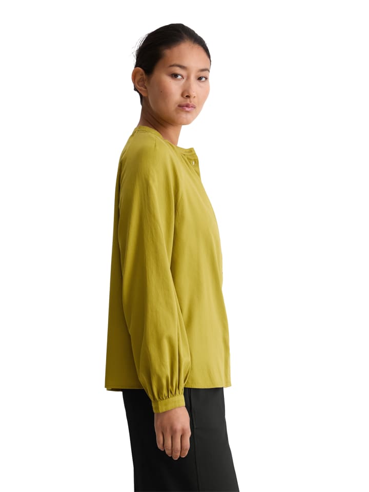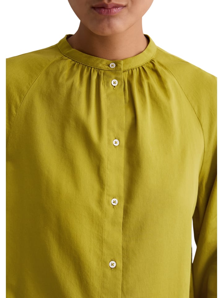 Мы обожаем блузки. Разнообразие фасонов и стилей располагает к комбинированию и экспериментам. Блузки - это также отличный способ заявить о себе. В прошлом сезоне мы отдавали предпочтение укороченным фасонам, а в этом сезоне мы делаем ставку на рукава-фонарики. Эта свободная блузка А-силуэта сшита из очень легкого и невероятно мягкого хлопкового атласа, полученного из чистого сертифицированного органического хлопка. У нее воротник-стойка и присборенная горловина, длинные широкие рукава реглан с узкими присборенными манжетами, потайная планка с полупуговицами и прямой подол.