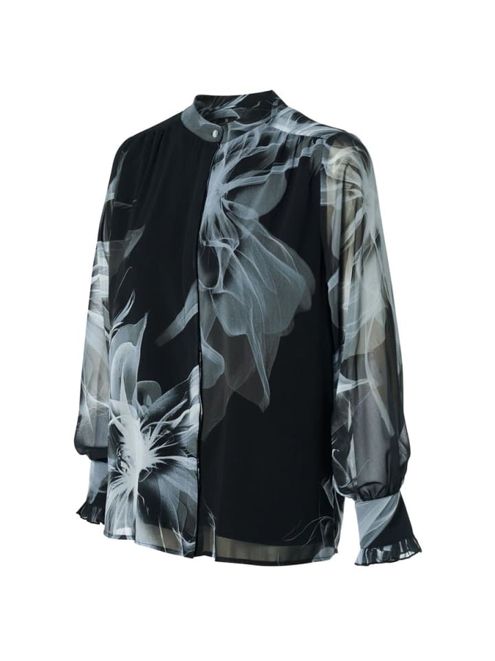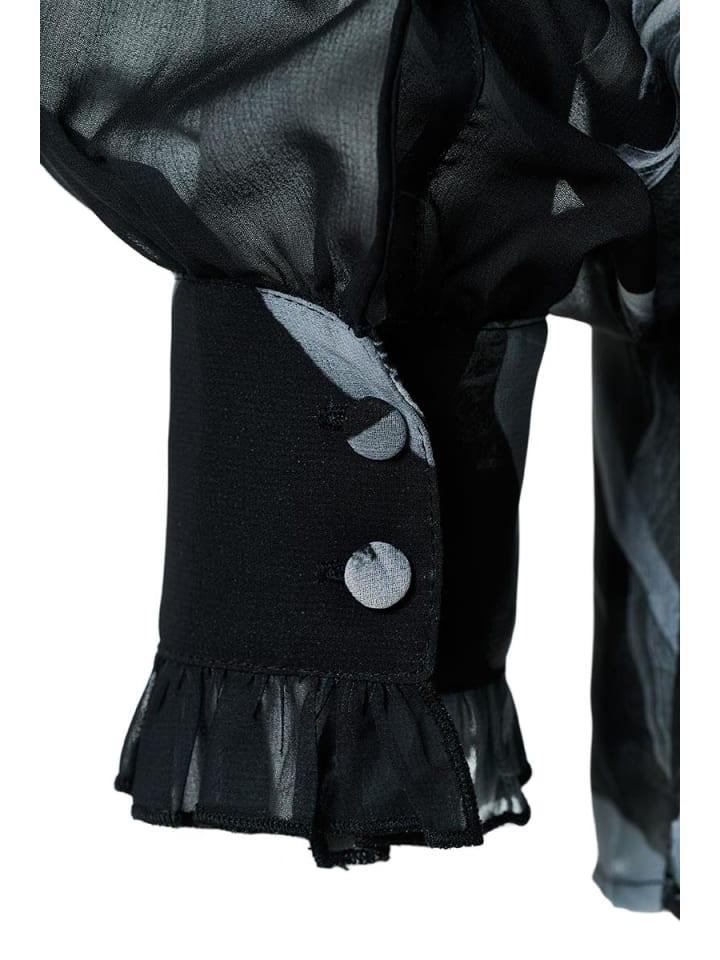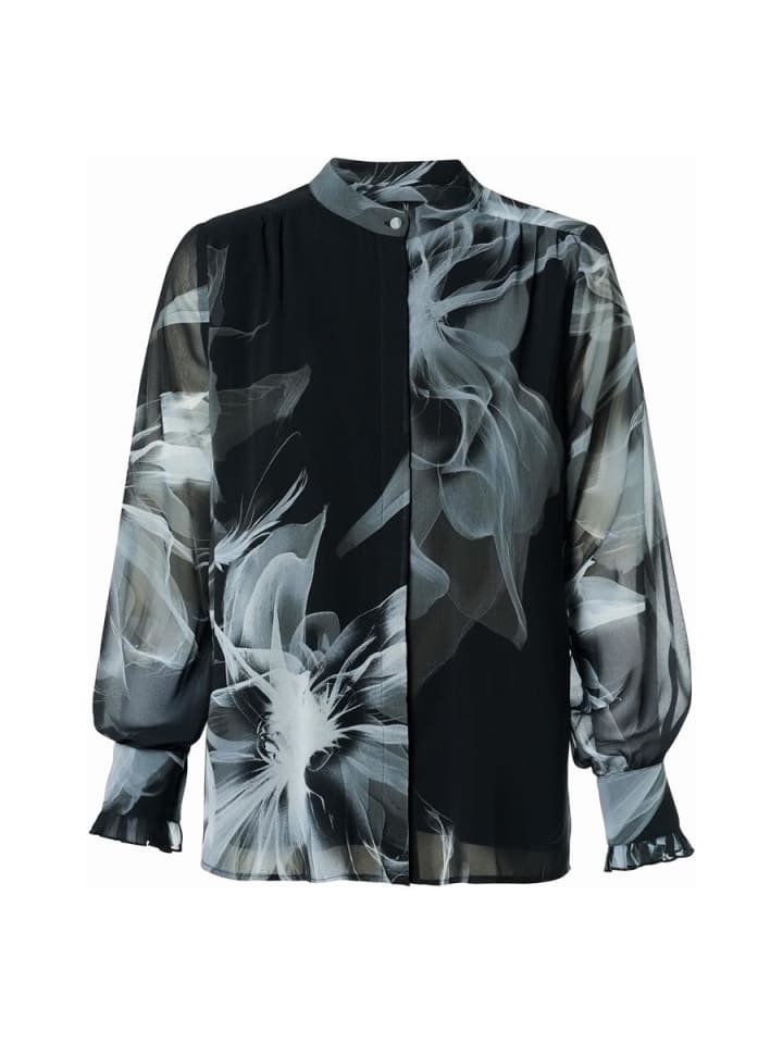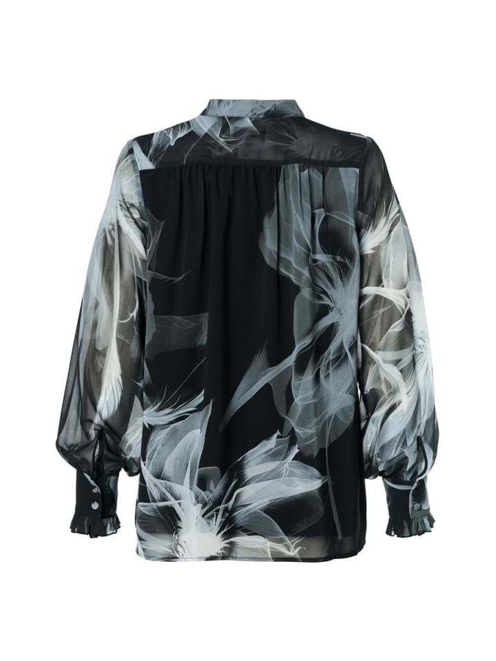 Блузка с принтом Caylee от Mart Visser - модная и стильная вещь, которая просто необходима. Черно-белый абстрактный цветочный мотив делает эту блузку универсальной и легко сочетается с другими вещами из коллекции. Блузка имеет элегантную завязку на шее, которую можно завязать, оставить расстегнутой или даже полностью снять для более сдержанного образа. Женственные детали, такие как оборки на рукавах и тонкий эффект вуали, создают воздушный и элегантный образ. В сочетании с подходящей майкой блузка обеспечивает достаточное покрытие и стиль. Гладкий эластичный полиэстер обеспечивает длительный комфорт и красивую посадку. Независимо от того, выбираете ли вы повседневный наряд или более официальный образ, эта блузка всегда добавит нотку стиля.