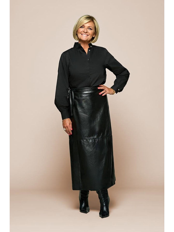 Создайте стильное впечатление с этой черной блузкой под смокинг - элегантным и универсальным дополнением к вашему гардеробу. Прямой крой и длинные рукава обеспечивают удобную и элегантную посадку, слегка укороченный перед создает игривый, современный образ, а воротник-стойка добавляет изысканный штрих. Благодаря глубокому черному цвету блузку можно сочетать как с деловыми, так и с повседневными вещами. Носите ее с брюками или кожаной юбкой для делового или праздничного образа, а с джинсами и ботинками - для создания повседневно-шикарного образа. Прямой крой и высококачественная ткань обеспечивают блузке плавные драпировки и сохраняют элегантную форму - выгодное вложение.