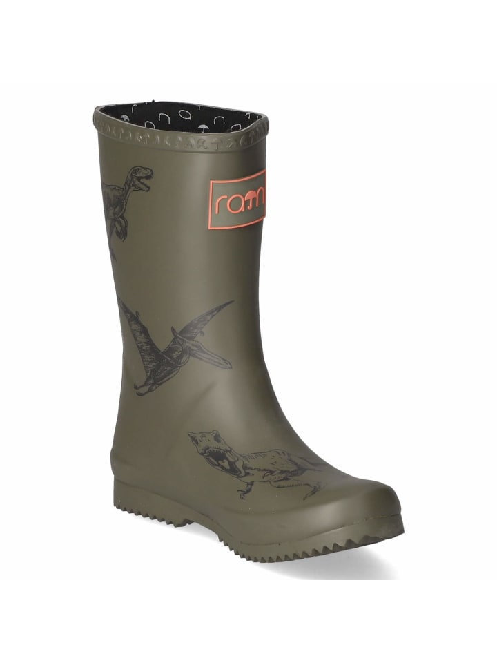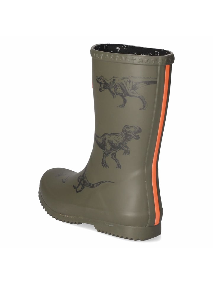 Резиновые сапоги Rajn ярко-зеленого цвета сочетают в себе защиту и комфорт для повседневной носки. Водонепроницаемый резиновый верх надежно сохраняет ноги сухими, а нежный принт с динозаврами добавляет очаровательный штрих, который никогда не будет лишним. Закругленный носок и открытый носок позволяют легко надевать сапоги, а укрепленное голенище с оранжевой полосой обеспечивает поддержку и добавляет свежий яркий акцент. Тонкая текстильная подкладка внутри в сочетании с текстильной стелькой и мягкой съемной стелькой обеспечивает комфортную амортизацию. Гибкая нескользящая подошва обеспечивает надежную опору в дождливую погоду. Сапоги соответствуют размеру и хорошо сочетаются со многими нарядами. Модный совет: сочетайте их с клетчатой курткой-дождевиком зеленых оттенков и бежевыми брюками чинос. Цветные резинки на подоле добавляют игривые акценты.