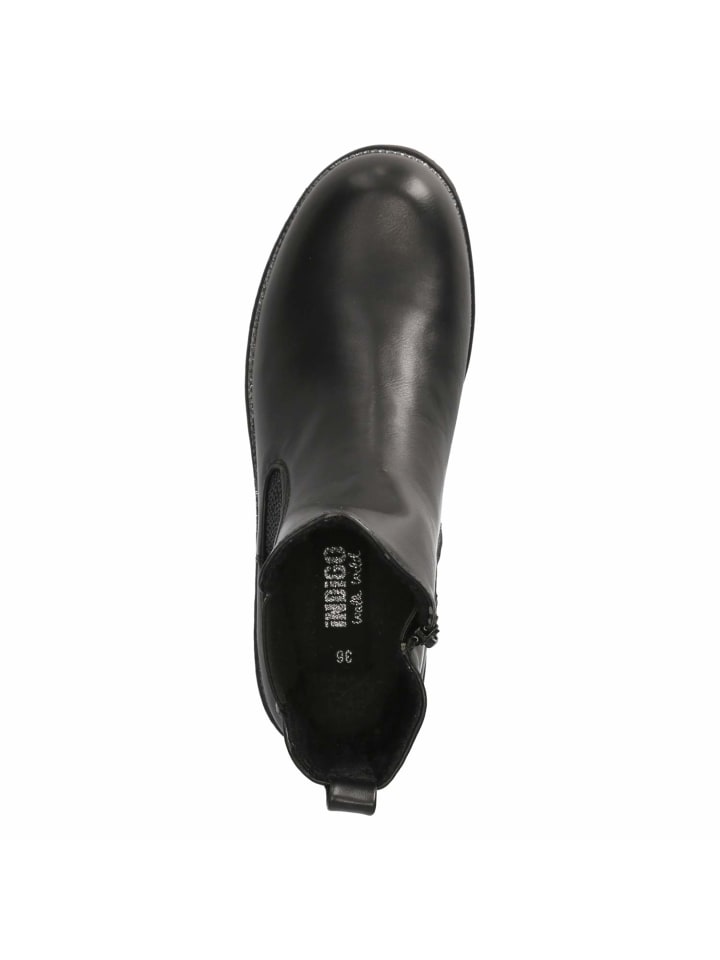 Вневременной дизайн в мини-формате: ботинки Chelsea Indigo черного цвета созданы для детей, которые ценят комфорт и стиль. Легкий в уходе верх из текстиля и синтетического материала обеспечивает прочность для повседневной носки, а закругленный носок и блочный каблук высотой 3 см обеспечивают комфорт и устойчивость. Отсутствие застежек в сочетании с эластичной вставкой на голенище и практичным язычком позволяет легко надевать и снимать ботинки. Легкая подкладка согреет в прохладные дни; мягкая стелька и гибкая нескользящая подошва обеспечивают комфорт. Усиленная пятка повышает устойчивость, а синтетическая стелька легко чистится. Легкое серебристое мерцание на ранте добавляет модный штрих, который подчеркивает простой дизайн. Обувь соответствует размеру. Модный совет: черные леггинсы, свободная толстовка и стеганый жилет создают спортивный, но в то же время лаконичный образ.