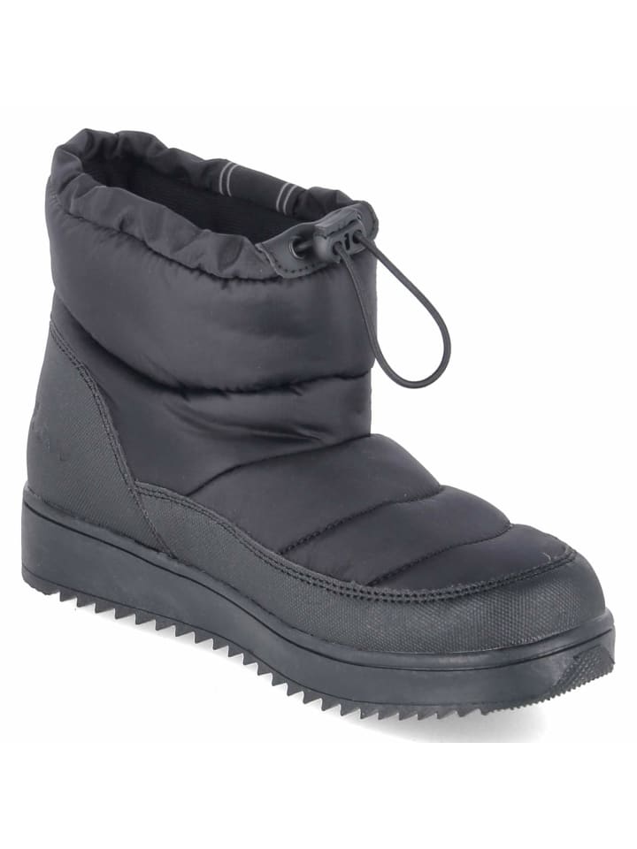 Ботинки Moonboot MONTANA G от Champion сочетают в себе водонепроницаемость и современный дизайн. Верх из смеси текстиля и синтетических материалов обеспечивает водонепроницаемость, а водоотталкивающая пропитка защищает от слякоти и дождя. Уютная теплая подкладка сохраняет ноги в тепле, а закругленный носок и усиленная рама повышают комфорт и поддержку. Нескользящая подошва обеспечивает надежную опору, а съемная стелька позволяет использовать индивидуальные ортопедические стельки. Точная система шнуровки с гибкой быстроразъемной застежкой делает ботинки удобными и надежными в использовании. Посадка по размеру идеальна, а текстильная стелька удобна. Глубокий черный цвет придает ботинкам спортивный и универсальный вид. Модный совет: можно создать чистый зимний ансамбль, сочетая эти туфли с черными термолеггинсами или брюками в горнолыжном стиле и короткой пуховиком.