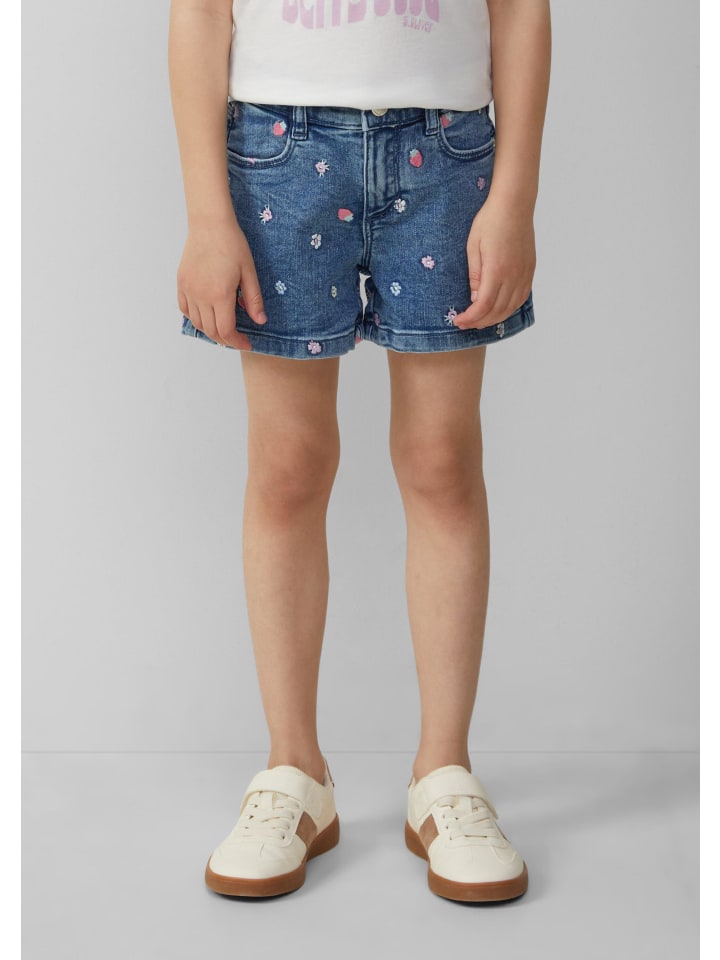 Стильные джинсовые шорты с очень высокой посадкой и широкими штанинами для вашего ребенка. Джинсовая ткань с вышивкой по всей поверхности создает стильный образ. Практичные детали, такие как регулируемая талия, боковые карманы и металлическая молния, делают эти шорты удобным спутником для прогулок и отдыха.