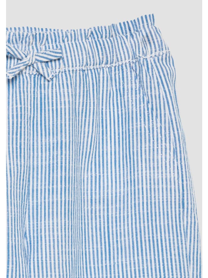 Ваше маленькое сокровище будет в центре внимания в этих нарядных хлопковых брюках! Тонкая полосатая ткань, имитирующая лен, создает элегантный образ. Эластичный пояс и свободный крой гарантируют свободу движений. Эти брюки с милым бантом и широкими брючинами идеально подходят для особых случаев. Дополните их милым топом, чтобы создать очаровательный образ для вашего малыша!