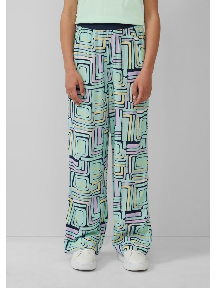 Стильные брюки широкого кроя для девочек. Свободный крой и высокая талия обеспечивают комфорт и стильный вид. Изготовлены из воздушной вискозной ткани с узором по всей поверхности, идеально подходят для теплых дней. Практичные боковые карманы вмещают маленькие сокровища. Универсальны и легко комбинируются с повседневными летними нарядами.