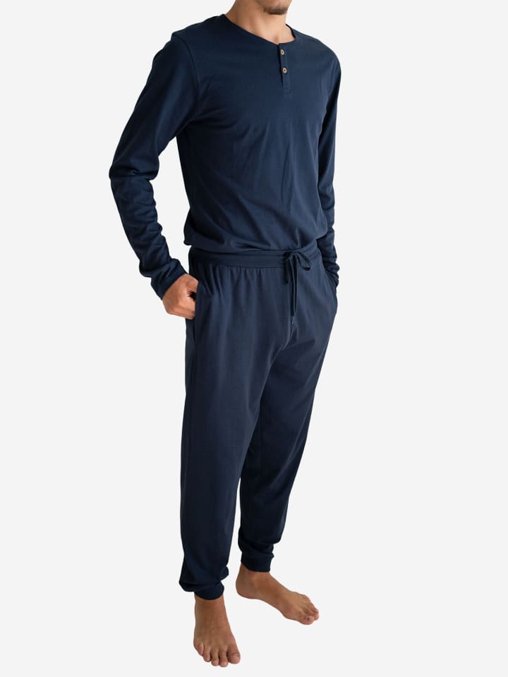 Эта упаковка из 2 мужских пижамных штанов от Phil & Co. Berlin изготовлена из 100% хлопка, что делает их приятно мягкими. Длинные штаны с эластичным поясом обеспечивают удобную посадку для отдыха. Темно-синий полосатый дизайн добавляет стильный штрих. Идеально подходит для отдыха, сна или в качестве комфортной домашней одежды.