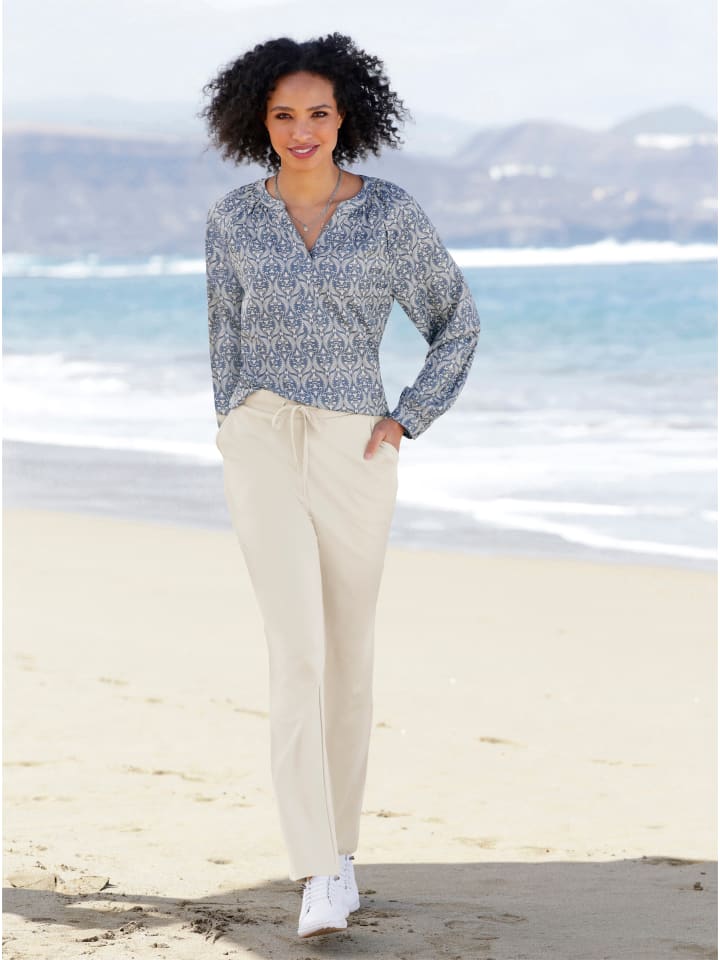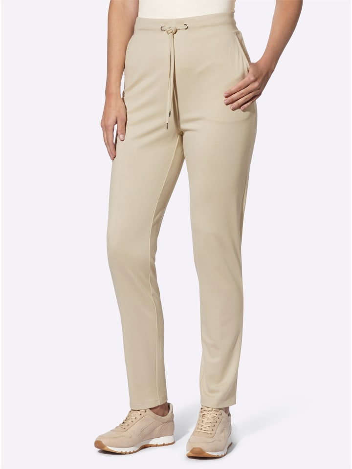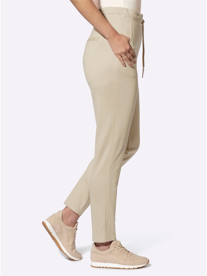Брюки Jogg: Повседневные и удобные, из супермягкой эластичной ткани. Эластичный пояс со шнурком, гладкий перед для подчеркивания живота. Передние карманы и декоративные карманы сзади. Высокая посадка. Комфортная посадка. Ширина брючины примерно 32 см. Изготовлены из вискозы Lenzing ECOVERO.
