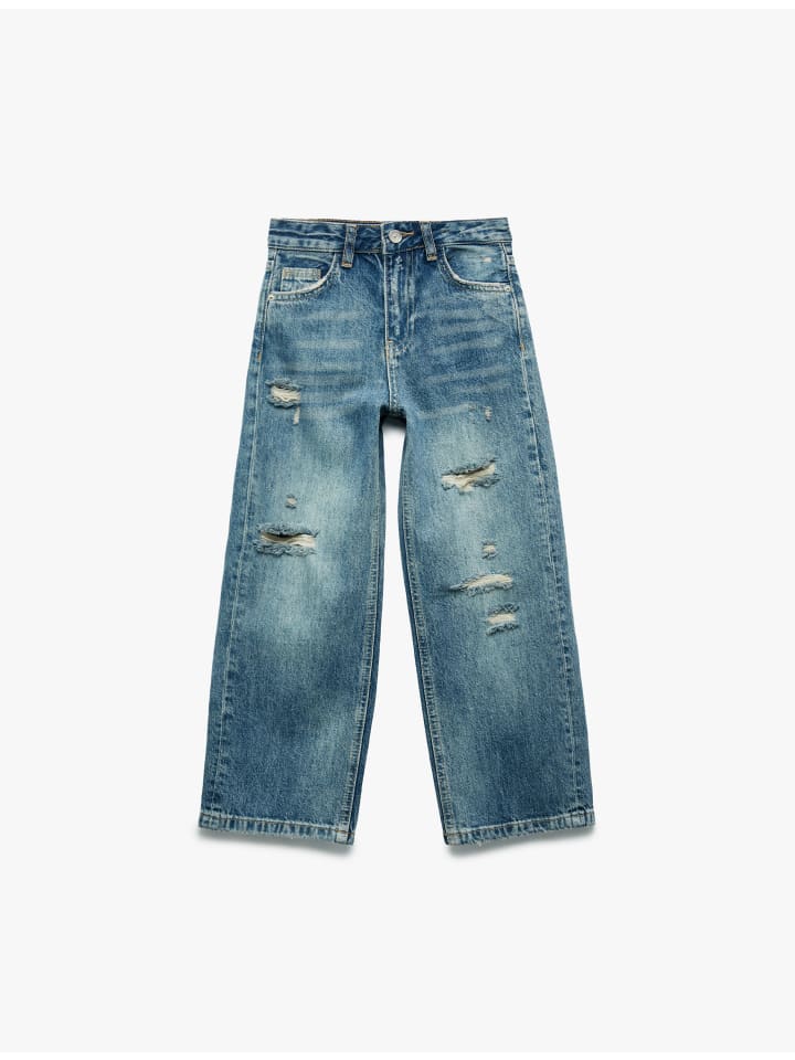 Эти джинсы впечатляют широким кроем и модным эффектом потертости. Практичные карманы обеспечивают функциональность, а мягкий деним - комфорт в течение всего дня. Идеальный выбор для стильных повседневных образов, которые добавят нотку крутости маленьким искателям приключений.