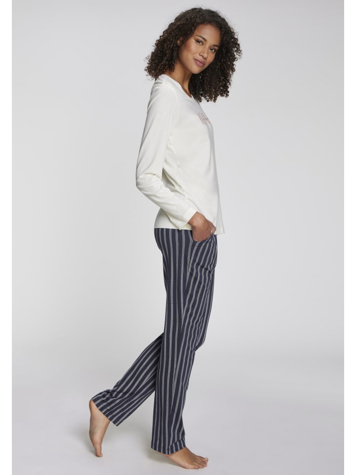 Пижамные штаны с рисунком от Vivance Dreams. Практичные боковые карманы, модный фасон, эластичный пояс со шнурком. Изготовлены из смеси хлопка и вискозы.