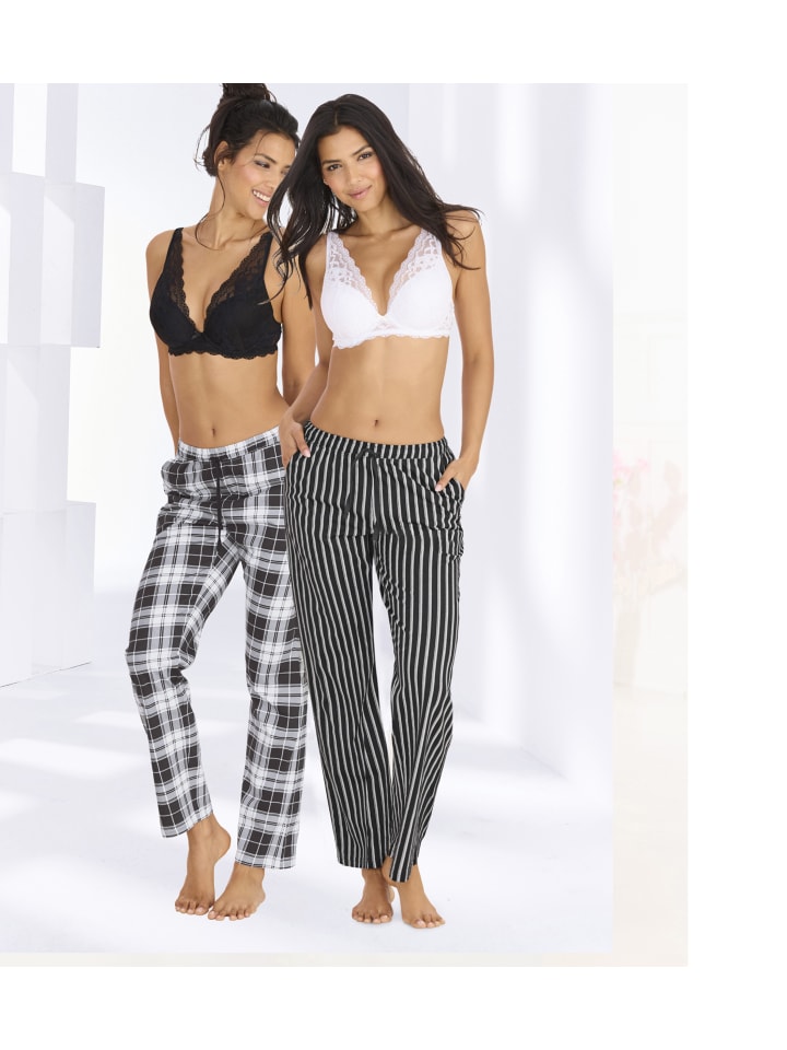 Пижамные штаны в упаковке 2 шт. от Vivance Dreams. Сплошной рисунок. Узкие штанины с эластичным поясом на шнурке. Боковые карманы. Удобный трикотаж из хлопка.