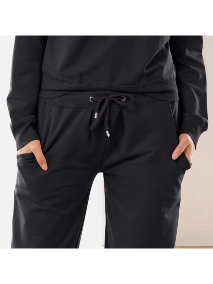 Женские спортивные брюки Erwin Müller, длинные. Для вашего спортивного образа. Удобные длинные брюки идеально сидят благодаря широкому поясу. Два боковых кармана и шнурок. Абсолютно удобная вещь из нечесаной ткани для свитшота.