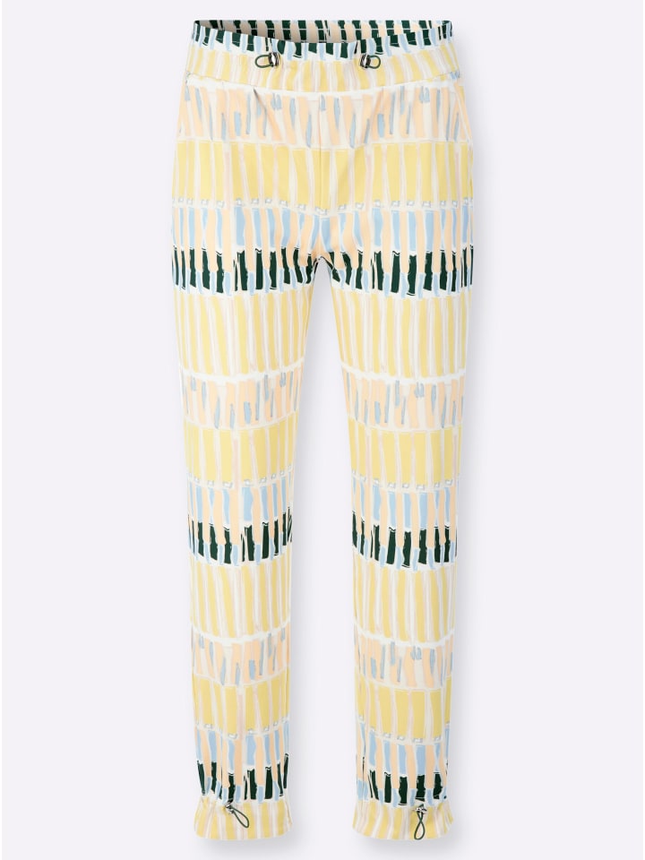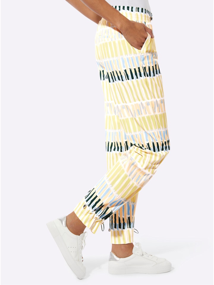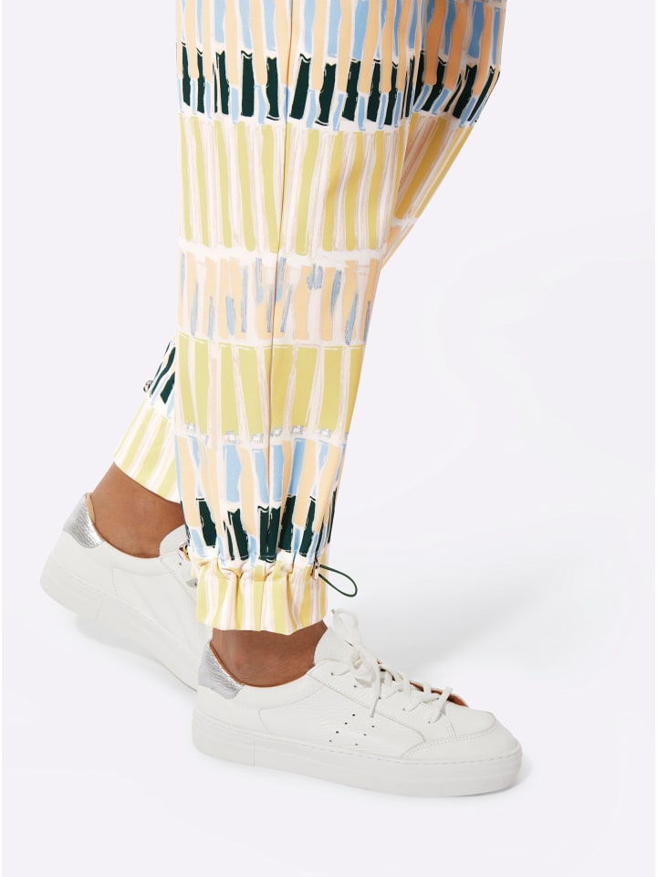 Повседневнее не бывает! Или круче! Брюки-джоггеры с эластичным поясом, гладким спереди, что делает их невероятно удобными, не добавляя объема. Талия регулируется шнурком с эластичным шнуром и фиксаторами. Два кармана с имитацией листочки. Ширина брючины примерно 38 см. Изготовлено из переработанного полиамида.