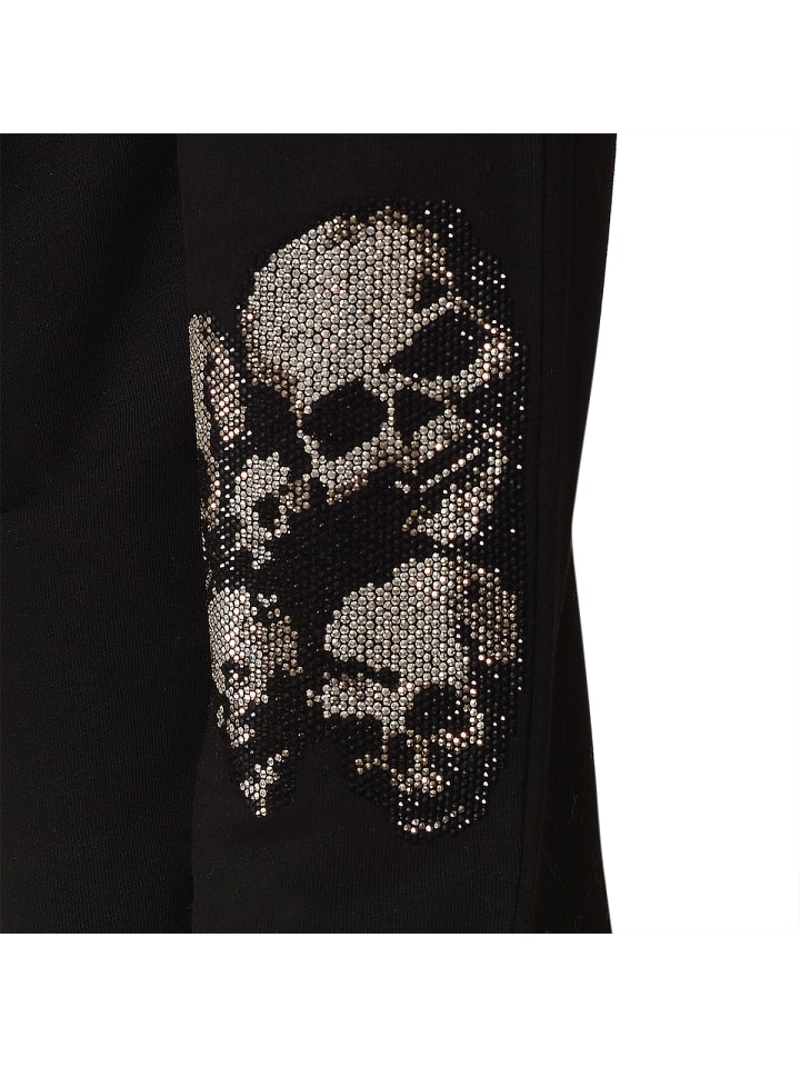 Повседневные женские брюки с крутыми серебряными/черными черепами из стразов на обеих штанинах.