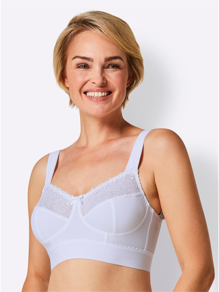 С красивым кружевом из тюля на верхних чашках: бюстгальтер без косточек от Wäschepur с мягкими регулируемыми бретельками сзади, чашечками из 3 секций и широкой мягкой лентой под грудью для оптимальной поддержки.