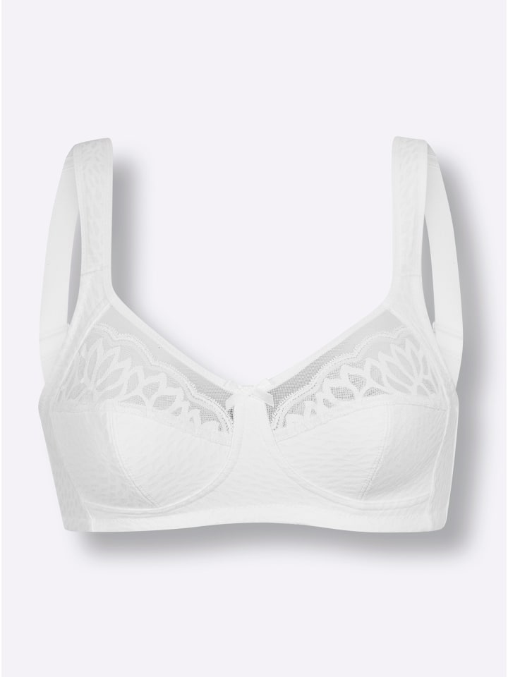 Бюстгальтер без косточек от Susa. Двухсекционные чашки украшены элегантным жаккардовым узором, а верхняя часть отделана нежной кружевной отделкой. Боковые косточки обеспечивают оптимальную поддержку груди. Удобные бретели регулируются сзади.