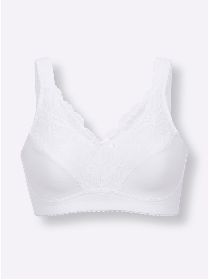 Из приятного для кожи хлопка, сертифицированного GOTS: бюстгальтер без косточек от Wäschepur. Красиво декорирован кружевом на вырезе. Мягкие бретельки регулируются сзади.