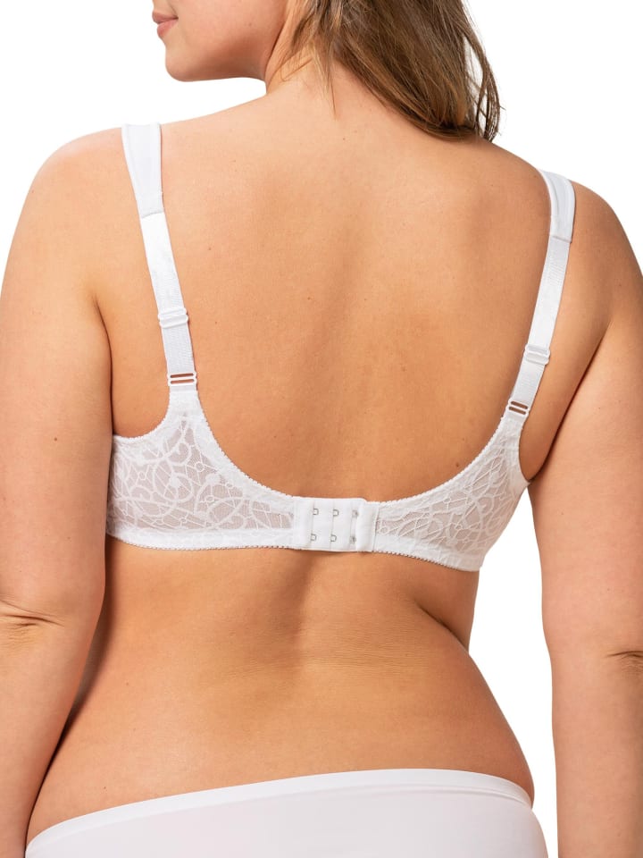 Сочетание гладкой ткани и кружевных деталей по центру и на спинке делает этот бюстгальтер из серии Comfort Minimizer от Triumph просто необходимым. Особенно подходит женщинам с женственными изгибами.