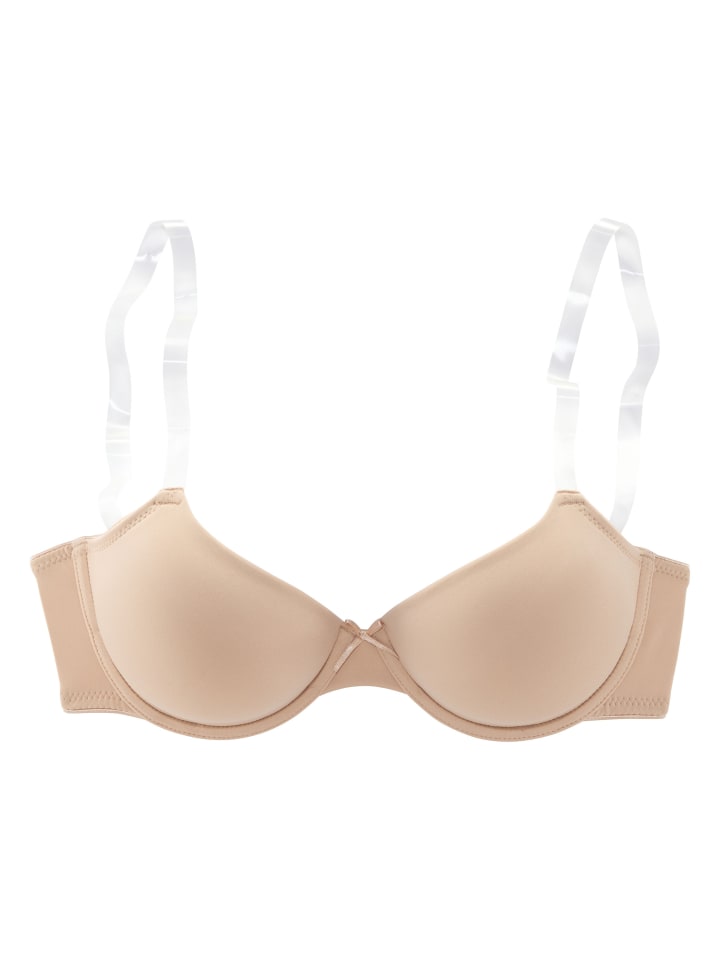 Бюстгальтер LASCANA с формованными чашками и прозрачными бретельками. На косточках, с бесшовными чашками с легкой подкладкой. Идеально подходит под облегающий топ. Классическое нижнее белье. Удобное повседневное белье. Модное нижнее белье. Бюстгальтер с формованными чашками изготовлен из 85% полиамида (Tactel), 15% эластана (LYCRA). Бюстгальтеры не подходят для машинной сушки, так как регуляторы и кольца могут повредиться и порваться из-за высокой температуры.