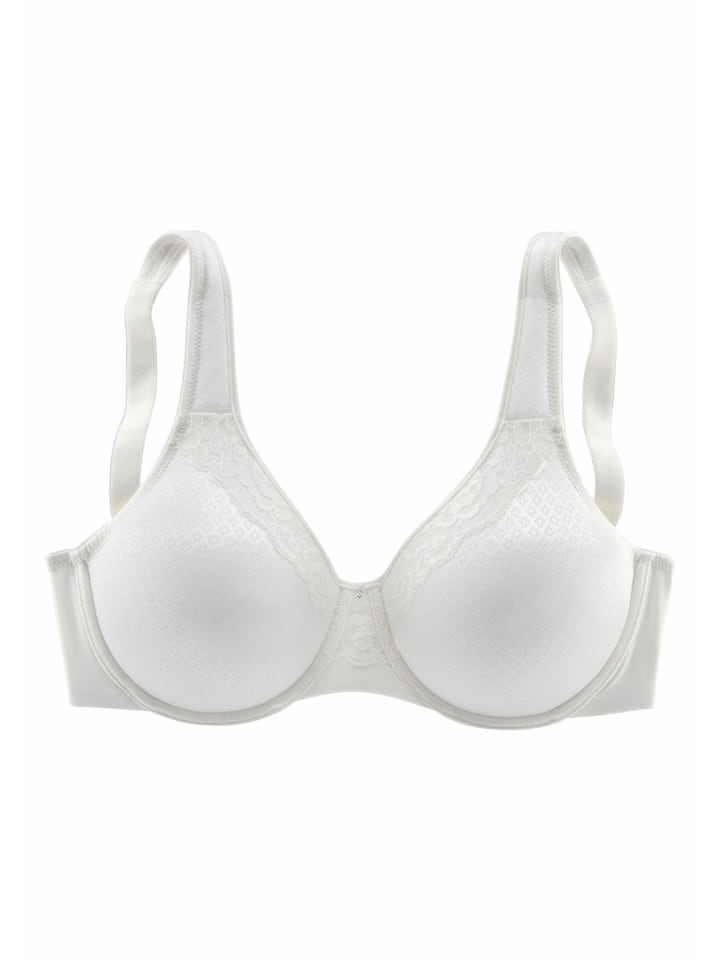 Нюанс: Бюстгальтер-минимер с бесшовными формованными чашками (без подкладок). Изготовлен из красивой жаккардовой ткани с кружевной отделкой по краю чашки. Специальный крой визуально уменьшает грудь на один размер. Регулируемые бретели и застежка на спине. Изготовлен из 86% полиамида, 15% эластана.
