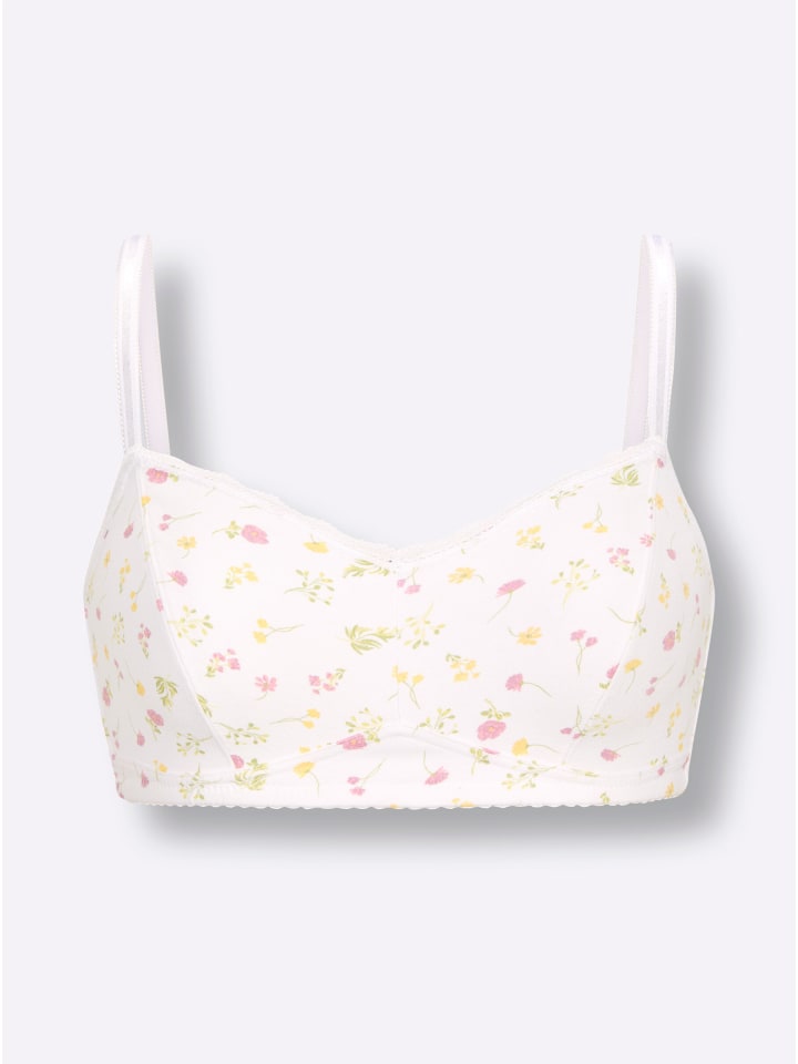 Бюстгальтер без косточек от Wäschepur с двухсекционными чашками, выполненный в модном принте. Изящная деталь: узкая окантовка по краю выреза. Эластичные бретели регулируются сзади. Соответствует инициативе «Хлопок, сделанный в Африке».