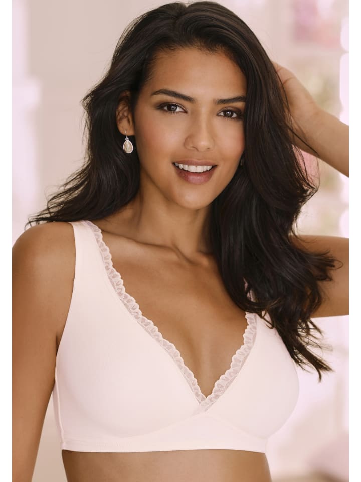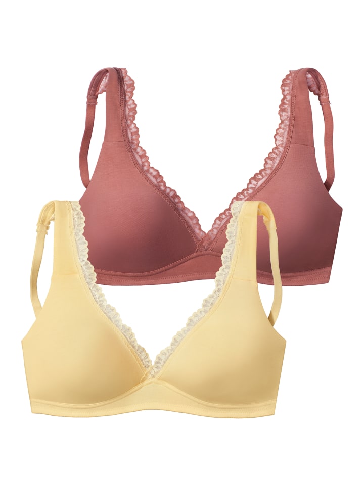 Базовый бюстгальтер без косточек с красивой кружевной отделкой и высоким лифом. С бесшовными, предварительно сформированными двухслойными чашками - без косточек. Изготовлен полностью из мягкой хлопковой смеси. Индивидуально регулируемые бретельки и застежка на спине. В привлекательной упаковке из двух бюстгальтеров. Изготовлен из 80% хлопка, 10% эластана, 10% полиамида.