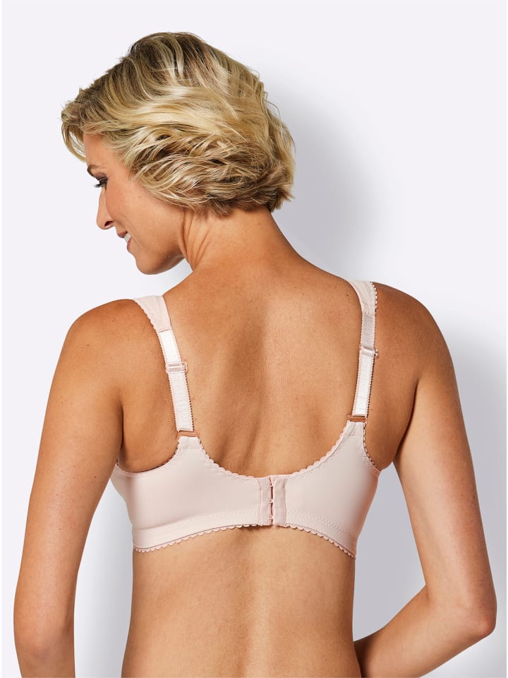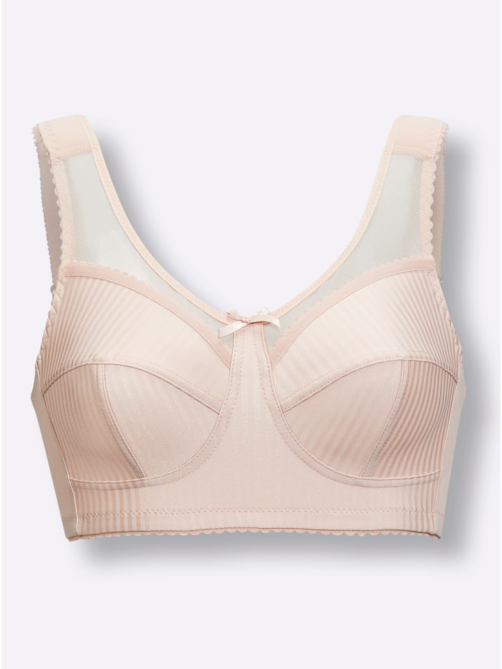 Поддерживающий бюстгальтер без косточек от Wäschepur. Трехсекционные чашки с тонкими полосками. Отделка тюлем по краю горловины. Широкие бретели с мягкой подкладкой, регулируемые сзади.
