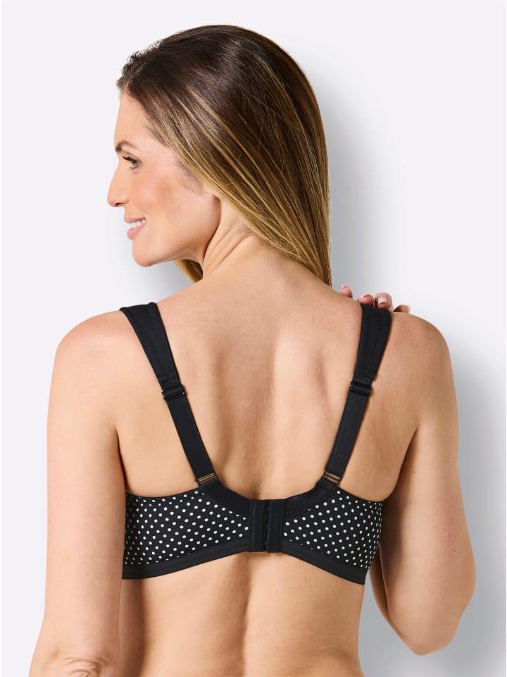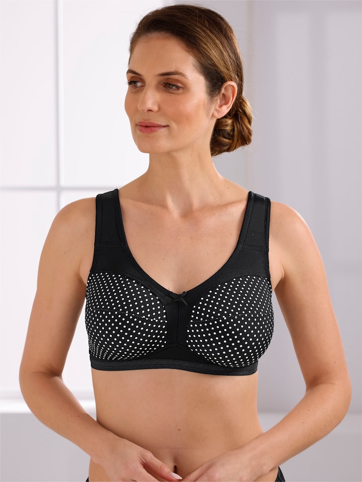 В нашей модели TURMALINE от Wäschepur: поддерживающий бюстгальтер без косточек со стильным принтом в горошек на двухсекционных чашках. Отделка по вырезу однотонная. Мягкие поддерживающие бретели регулируются сзади.