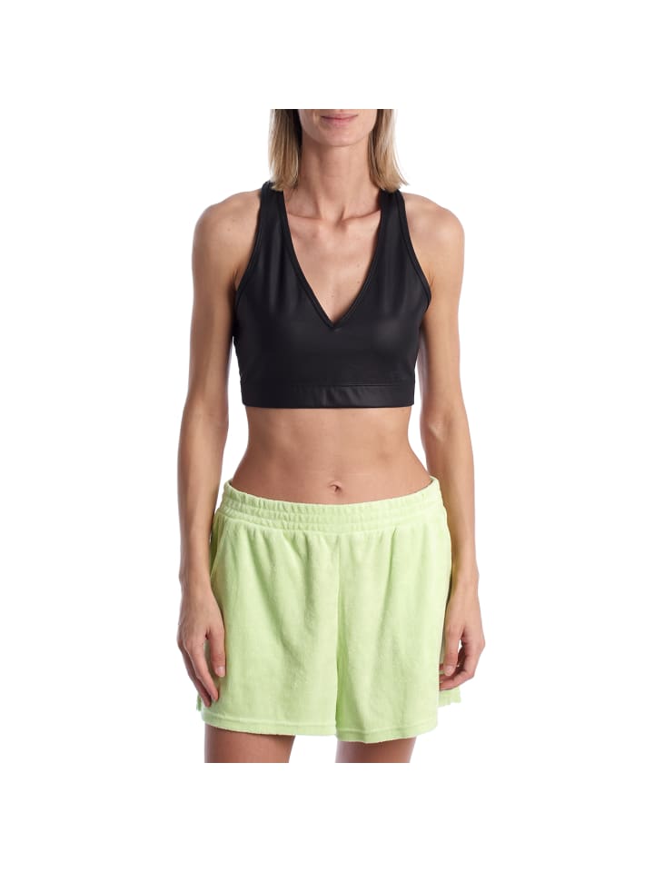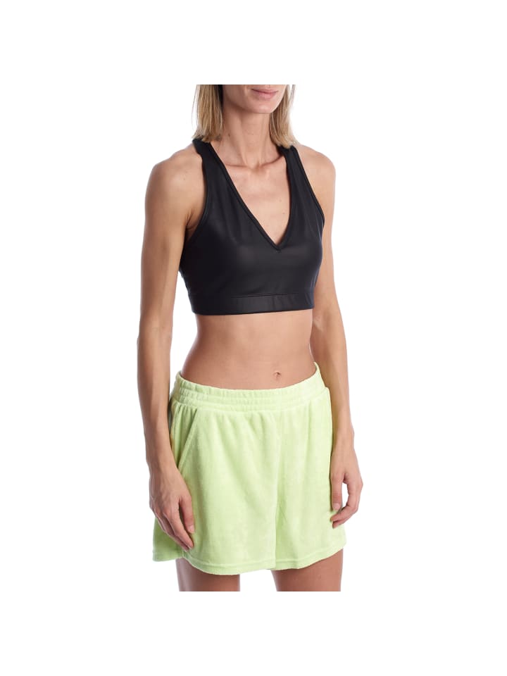 Короткий спортивный топ из высококачественной эластичной ткани, обеспечивающей комфорт и легкую поддержку во время физической активности или повседневной носки.