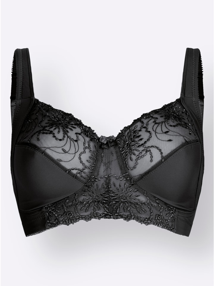 Бюстгальтер без косточек от Wäschepur с романтичным тюлевым кружевом на двухсекционных чашках и центральной вставкой. Бретели с подкладкой.
