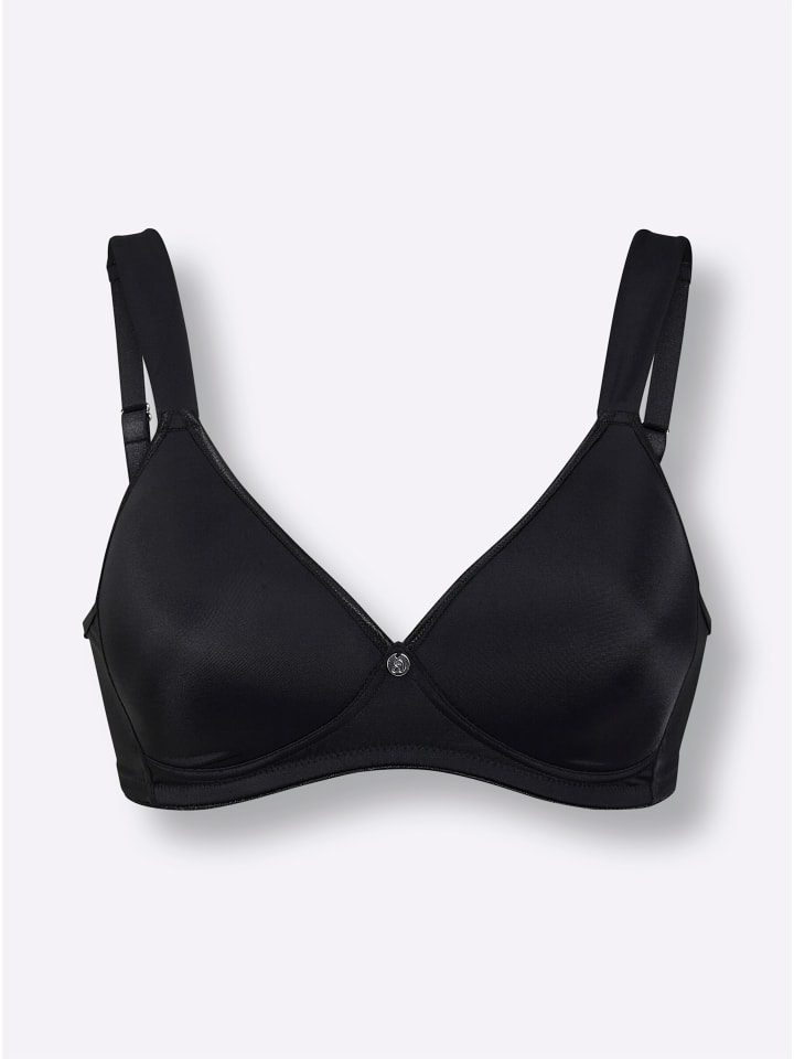 В стиле JASPIS: бюстгальтер-футболка без косточек от Wäschepur. Чашечки формованной формы с мягкой подкладкой. Элегантный: отделка эластичной атласной лентой по вырезу, под грудью и на спине. Декоративная подвеска Wäschepur между чашечками. Эргономичные бретели с мягкой подкладкой регулируются сзади.