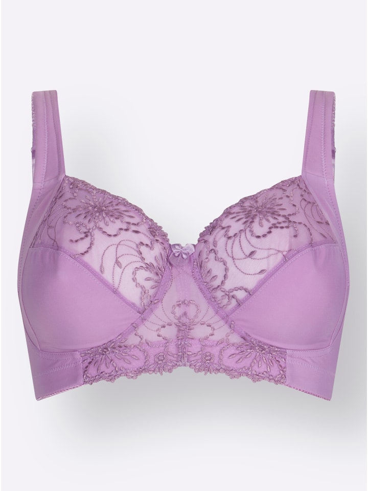 Бюстгальтер без косточек от Wäschepur с романтичным тюлевым кружевом на двухсекционных чашках и центральной вставкой. Бретели с подкладкой.