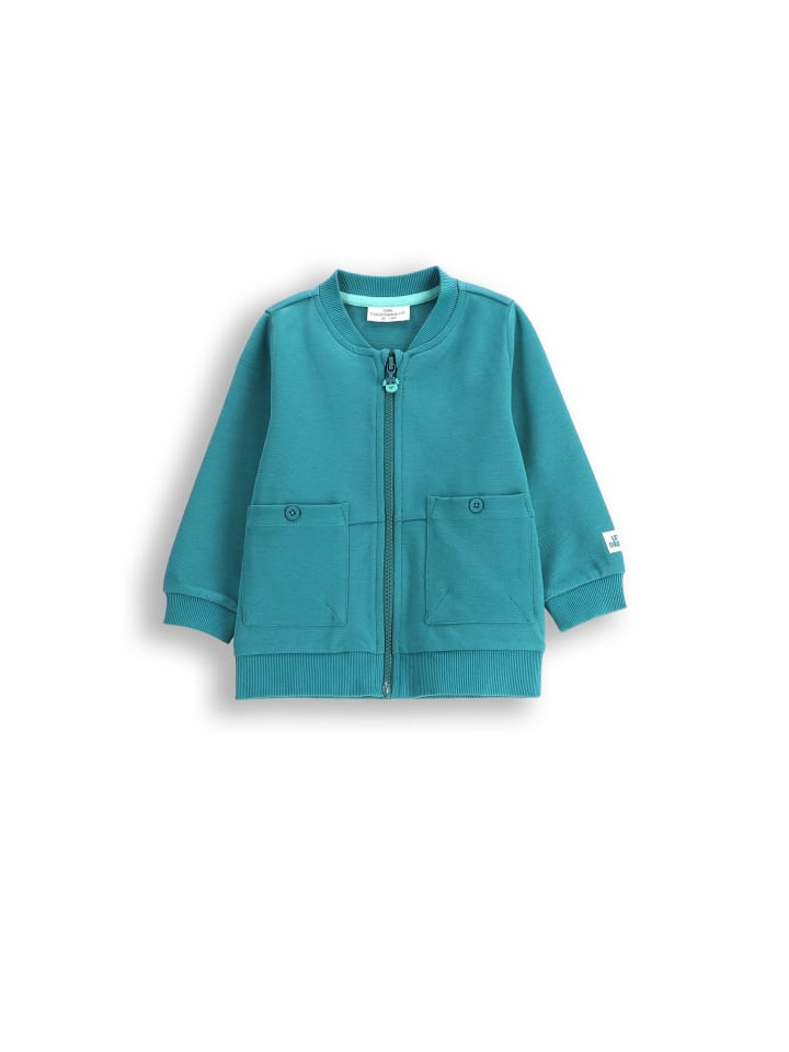 Откройте для себя бирюзовую толстовку, которая станет любимой в гардеробе вашего малыша. Изготовленная из текстурированного трикотажа, она обеспечивает комфорт и мягкость, идеально подходит для весенних и осенних дней. Куртка застегивается на молнию для легкого одевания и раздевания, что особенно практично для активных малышей.