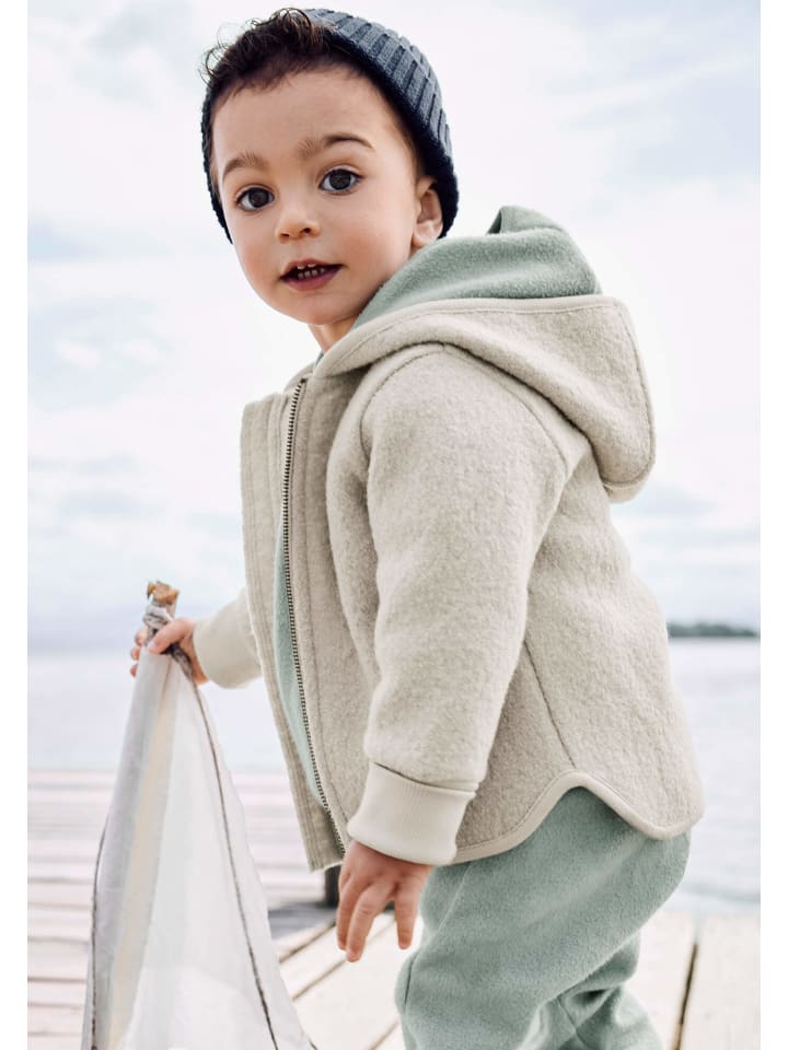 Чувствуете себя уютно на природе? Конечно! Эта куртка из вареной шерсти согреет вас, не перегреваясь. Дышащая, грязеотталкивающая и прочная - идеально подходит для детской площадки, леса и детского сада. Особенно практичная особенность: регулируемые манжеты, которые растут вместе с вашим ребенком.