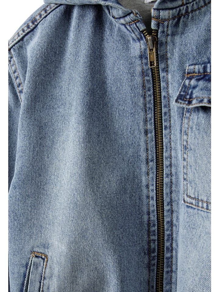 - Куртка с капюшоном из синего денима.