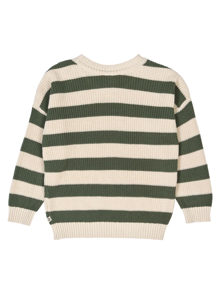 Этот классический трикотажный свитер изготовлен из чистого органического хлопка. Он имеет круглый вырез горловины и полоски цвета хаки/кремового цвета. Крупная вязка в сочетании с привлекательными полосками придает свитеру особый спортивный вид. Подарите любимому человеку исключительный комфорт нашего свитера крупной вязки из чистого хлопка. Изделие сертифицировано по стандарту GOTS Organic. В настоящее время это самый высокий стандарт для одежды. Все производственные процессы, такие как окрашивание, ткачество и шитье, осуществляются в соответствии со строжайшими экологическими стандартами. Условия труда также строго контролируются на каждом этапе производства. 100% хлопок