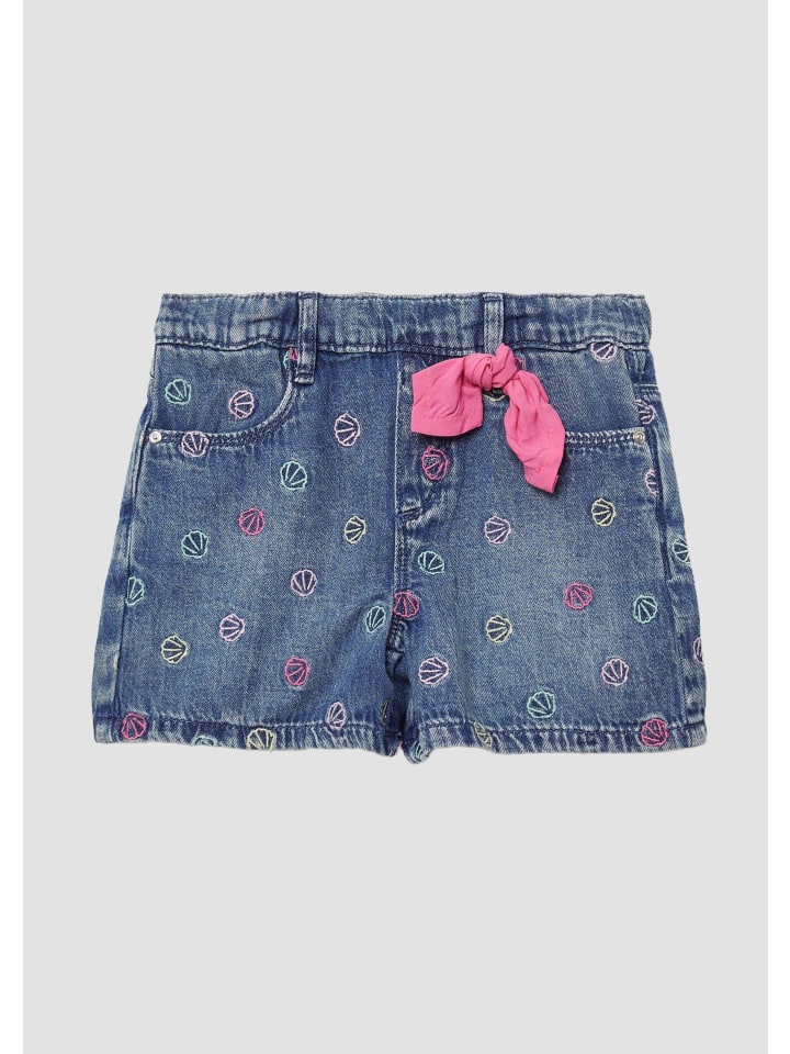 Повседневные джинсовые шорты для маленьких искателей приключений! Свободный крой и высокая талия с регулируемой шириной обеспечивают максимальный комфорт во время игры. Милая вышивка и бантик добавляют игривости этой джинсовой модели. Идеально подходит для летних дней в парке или семейных прогулок.
