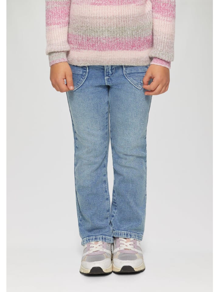 Удобные джинсы "Betsy" для активных детей от 2 до 9 лет. Классический крой со средней посадкой и расклешенными штанинами обеспечивает свободу движений. Мягкая хлопковая ткань с эластаном обеспечивает комфорт. Практичная внутренняя регулировка талии. Универсальны и идеально подходят для школы и отдыха.
