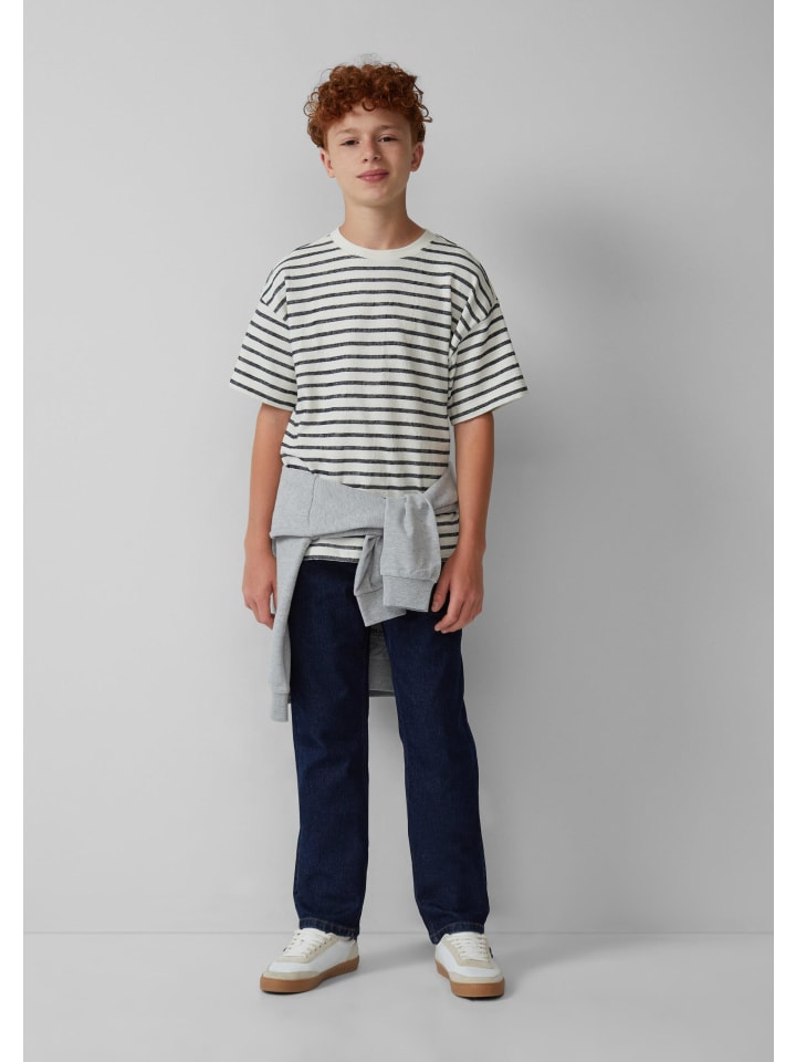 Стильные джинсы из суперэластичного денима обеспечивают оптимальную свободу движений. Классический крой и прямой крой брюк создают непринужденный образ. Практичная регулировка талии, эффект потертости и дизайн с пятью карманами делают эти джинсы со средней посадкой идеальным компаньоном для школы и отдыха.