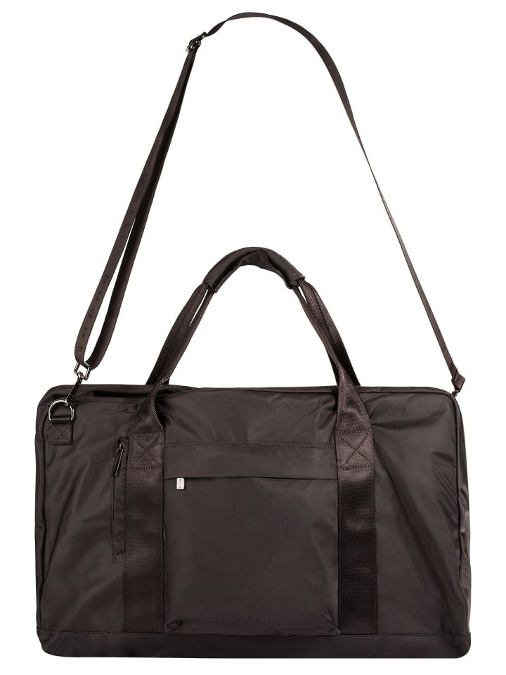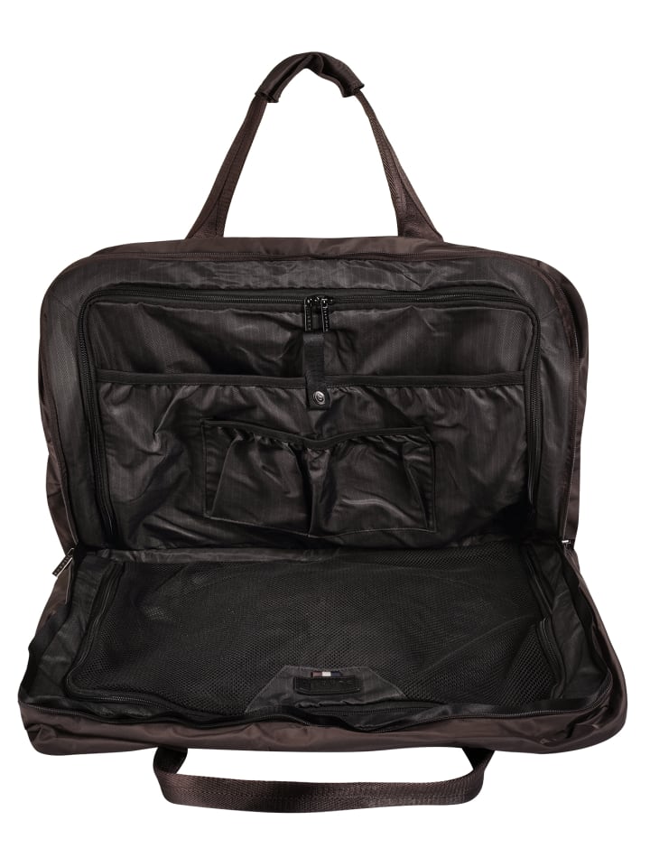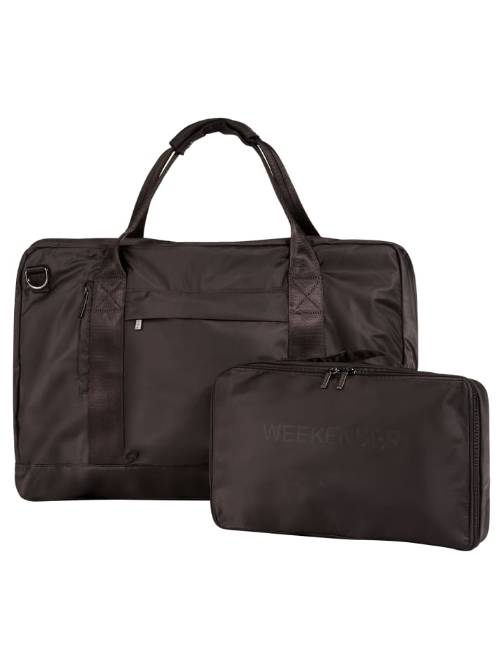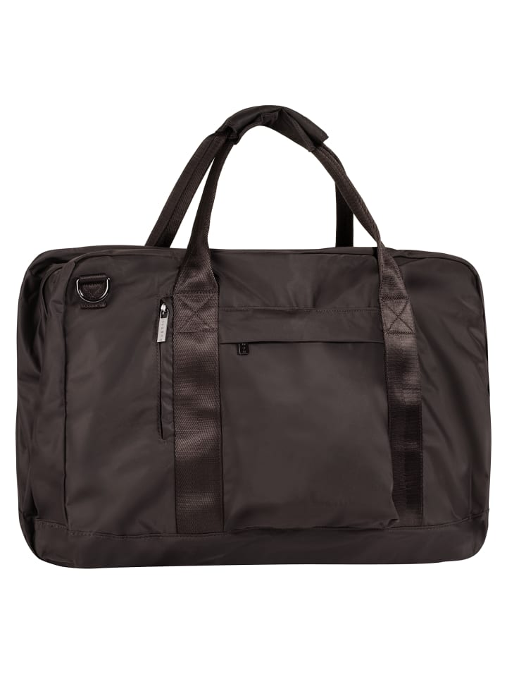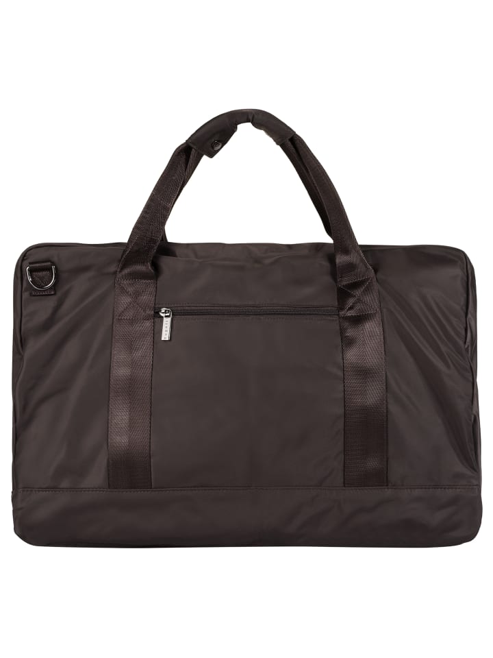 Трансформируемая дорожная сумка от Bugatti! Изготовленная из нейлона, она проста в уходе и гибкая. Это позволяет легко адаптировать сумку к вашим потребностям. Благодаря круговой молнии ее можно полностью раскрыть. Основное отделение состоит из двух секций на молнии и нескольких накладных карманов. Запираемые передние карманы и задний карман дополняют дизайн. Сумку можно удобно носить на чемодане, в руке или через плечо: чехол-тележка, длинные ручки и съемный плечевой ремень обеспечивают множество вариантов переноски. А когда поездка закончится, сумку можно легко хранить в компактном мешочке на молнии, который также можно использовать как косметичку.