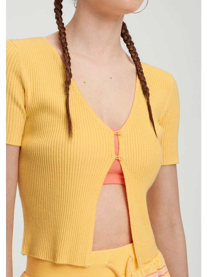 Ваше классное обновление: этот высококачественный топ в рубчик с V-образным вырезом - ваш новый незаменимый предмет гардероба на каждый день. Эластичный, с короткими рукавами и облегающий - идеально подходит для повседневных образов. Пуговицы добавляют стильные акценты. Сделайте его своей любимой вещью!