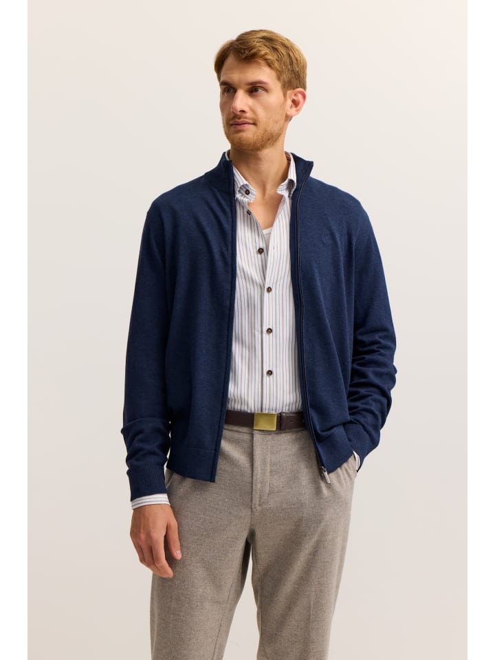 Этот кардиган bugatti сочетает в себе классический дизайн и превосходный комфорт, что делает его идеальным повседневным базовым предметом гардероба. Классический крой обеспечивает удобную посадку, не стесняет движений и дополняет любой наряд. Высокий воротник-стойка защищает от ветра в прохладные дни, придавая кардигану спортивный и современный вид. Прочная молния во всю длину позволяет легко надевать и снимать кардиган. Кардиган из чистого хлопка приятен на ощупь, дышащий и простой в уходе - идеально подходит для офиса, отдыха или путешествий. Два боковых кармана вмещают телефон или ключи и дополняют функциональный дизайн. Этот кардиган всегда будет отлично смотреться и обеспечит элегантный вид. Если вы цените качество, долговечность и непреходящую универсальность, этот кардиган bugatti станет для вас идеальным выбором.