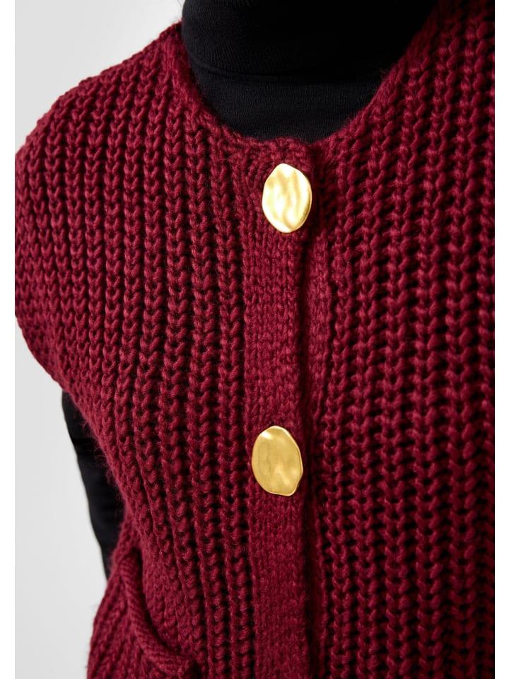 Повседневный трикотажный жилет с золотистыми пуговицами для стильного образа. Мягкая крупная вязка свободного кроя обеспечивает комфорт, а накладной карман практичен. Идеально подходит для расслабленного образа и стильных образов.