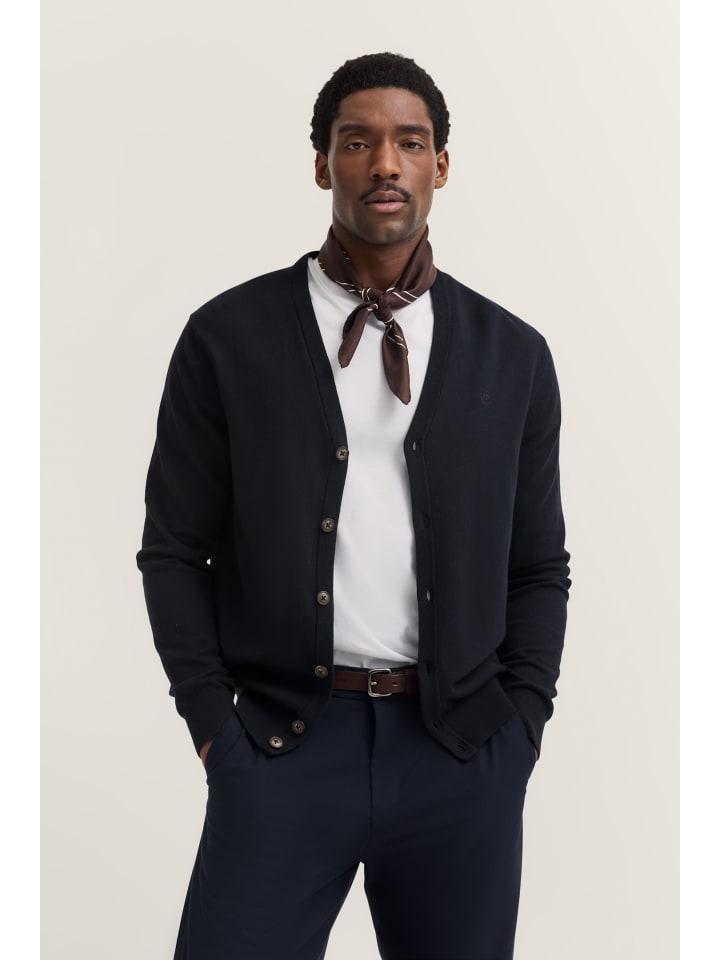 Этот кардиган bugatti впечатляет своим вневременным стилем и роскошным видом. Современный крой обеспечивает приталенный, элегантный силуэт, который одинаково хорошо сочетается с рубашкой, футболкой или поло. Классический V-образный вырез идеально дополнит ваш наряд и позволит создавать разнообразные сочетания - от спортивного и повседневного до элегантного. Планка с пуговицами подчеркивает стильный характер и позволяет носить кардиган как расстегнутым, так и застегнутым. Благодаря высококачественной смеси хлопка и кашемира ткань приятна на ощупь, дышащая и согревающая - идеально для прохладных дней. Высокое качество изготовления гарантирует, что кардиган сохранит свою форму даже после многочисленных стирок. Будь то в офисе, на ужине или во время отдыха - эта классика трикотажа всегда добавит нотку изысканности вашему образу. Если вы цените качество, комфорт и стильную универсальность, этот кардиган Bugatti станет для вас идеальным выбором.