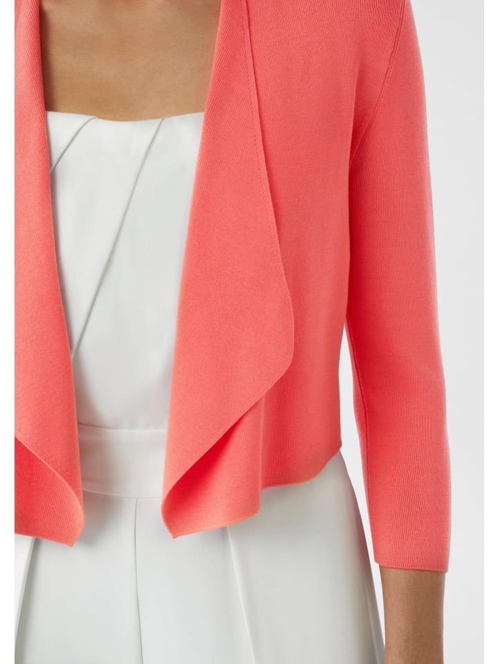 Откройте для себя этот укороченный кардиган тонкой вязки с рукавами 3/4, выполненный из мягкой эластичной вискозной смеси. Приталенный крой подчеркивает фигуру, а декоративная отделка и ажурные детали на спинке добавляют изысканности. Идеально подходит для создания многослойного образа или как самостоятельный элемент гардероба. Сочетайте его с джинсами с высокой талией для создания элегантного повседневного образа или с юбкой-карандаш для офиса.
