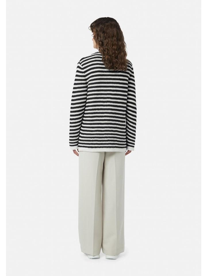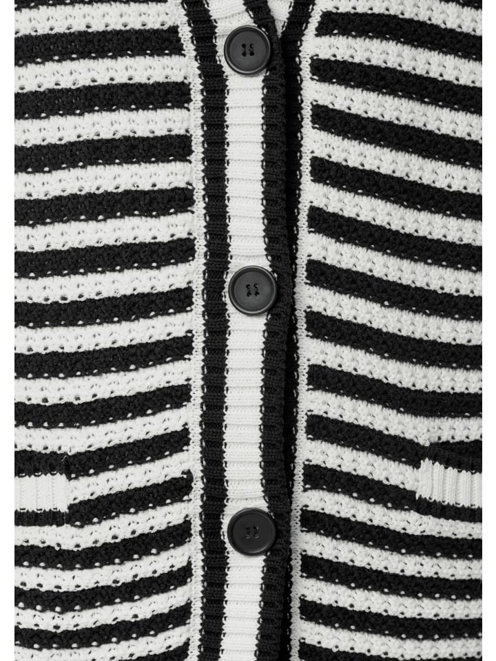 Воздушная непринужденность в сочетании со стильными полосками: этот кардиган свободного кроя - ваш новый фаворит. V-образный вырез и планка на пуговицах добавят женственности, а практичные прорезные карманы обеспечат функциональность. Изготовленный из мягкой смеси хлопка и полиэстера, он удобно подчеркивает вашу фигуру. Идеально подходит для создания непринужденных образов или в качестве элегантного слоя в прохладные дни.