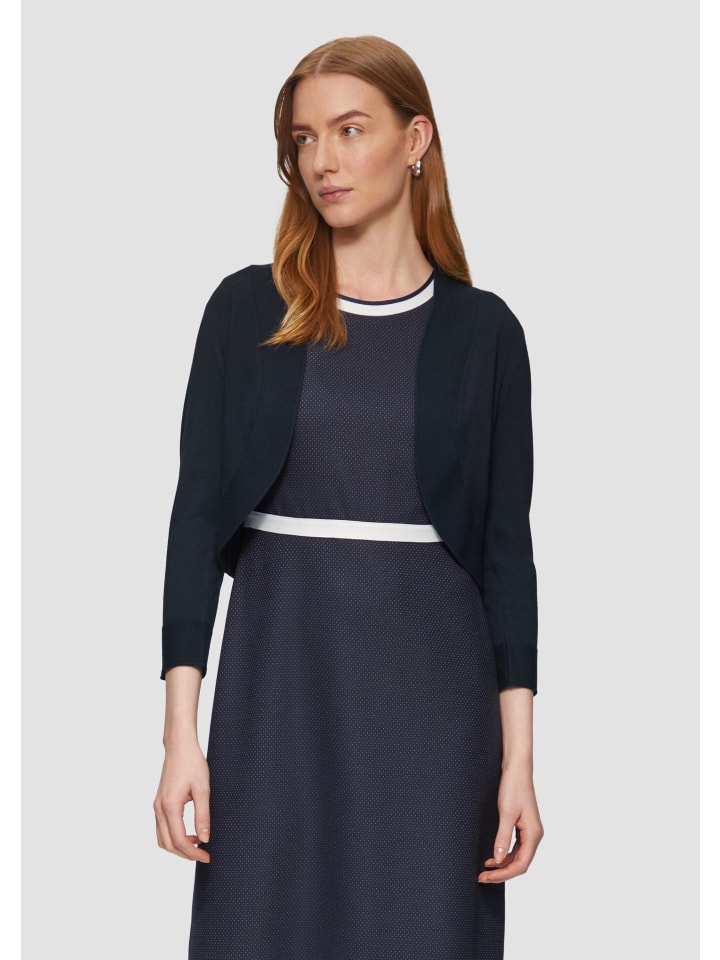 Стильная универсальность на каждый день: эта короткая куртка тонкой вязки с рукавами 3/4 станет вашим новым фаворитом. Закругленный подол и детали с планкой придают ей современный вид. Будь то в офисе или на неформальной встрече - вы будете впечатлять непринужденной элегантностью и комфортом благодаря классическому крою.