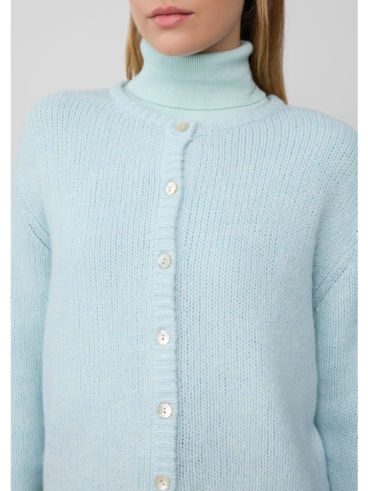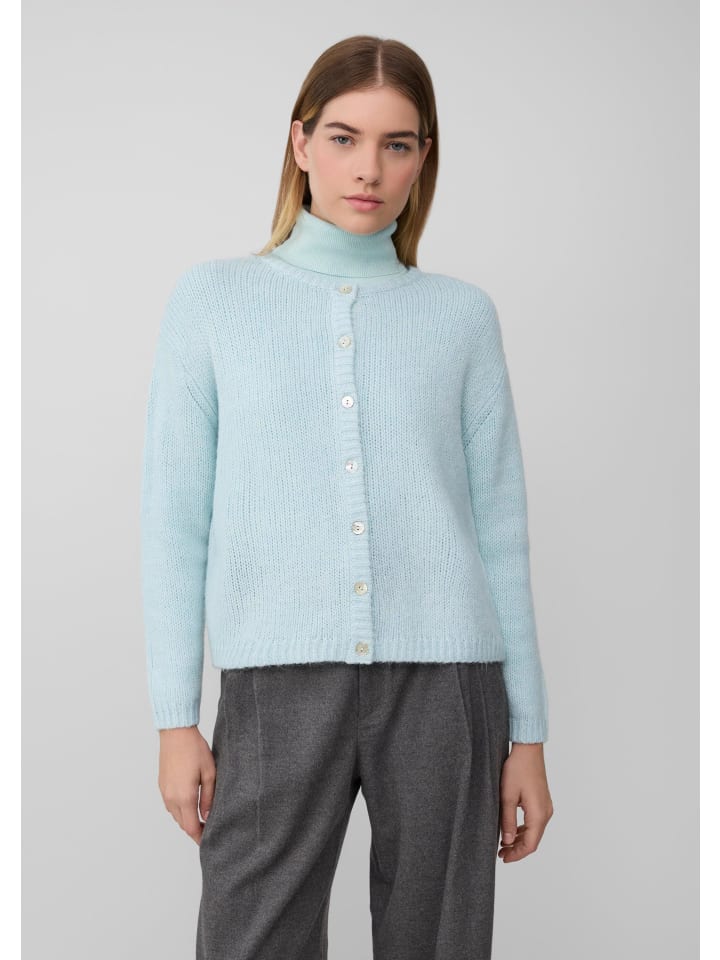 Мягкий и уютный кардиган из высококачественной пряжи с добавлением альпаки, связанный классическим узором. Классический крой и практичная планка на пуговицах делают его идеальным дополнением к непринужденным повседневным образам.