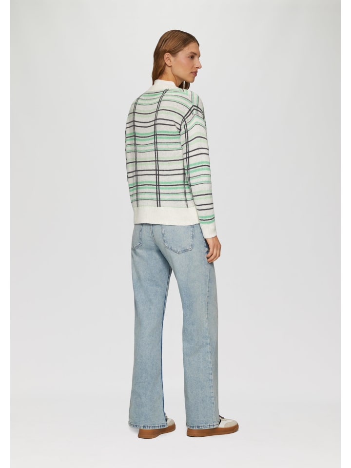 Этот уютный кардиган в модную клетку очаровывает мягкой шерстяной смесовой тканью и свободным кроем. V-образный вырез и планка на пуговицах добавляют женственности - идеально подходят для комфортных повседневных образов.