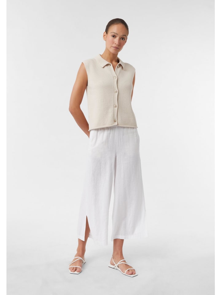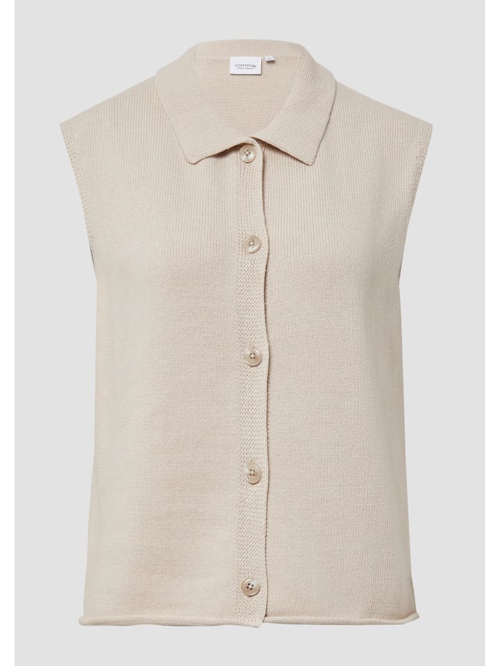 Стильный и универсальный: этот трикотажный жилет без рукавов из смесовой хлопковой ткани впечатляет элегантным отложным воротником и мягкой эластичной вязкой. Подвернутый край добавляет изысканности, а планка с пуговицами обеспечивает практичный комфорт. Наденьте жилет поверх рубашки для создания повседневного образа или с блузкой для создания делового шика. Незаменимая вещь в любом гардеробе!