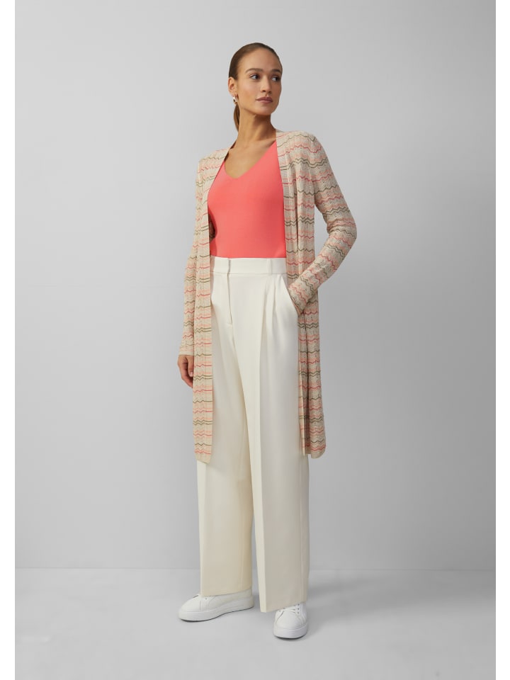 Сверкающий длинный кардиган для сияющего образа. Зигзагообразный узор и элегантная блестящая пряжа создают ослепительный вид. Этот универсальный аксессуар из тонкой вискозной смеси идеально впишется в ваш стиль, будь то в офис или на неформальное мероприятие. Носите его с уверенностью и заявите о себе.
